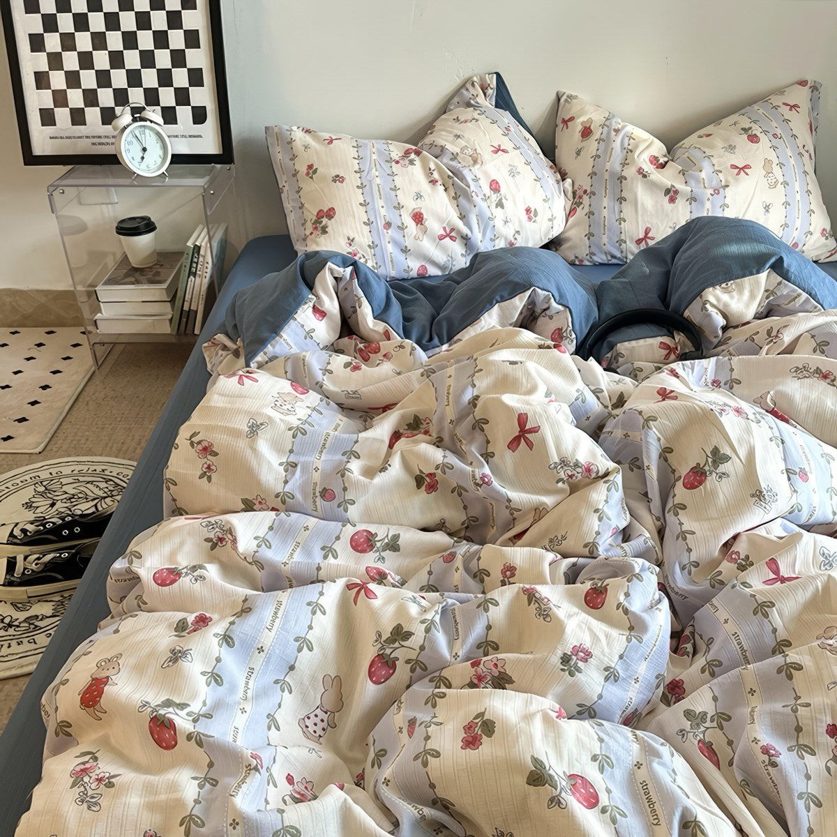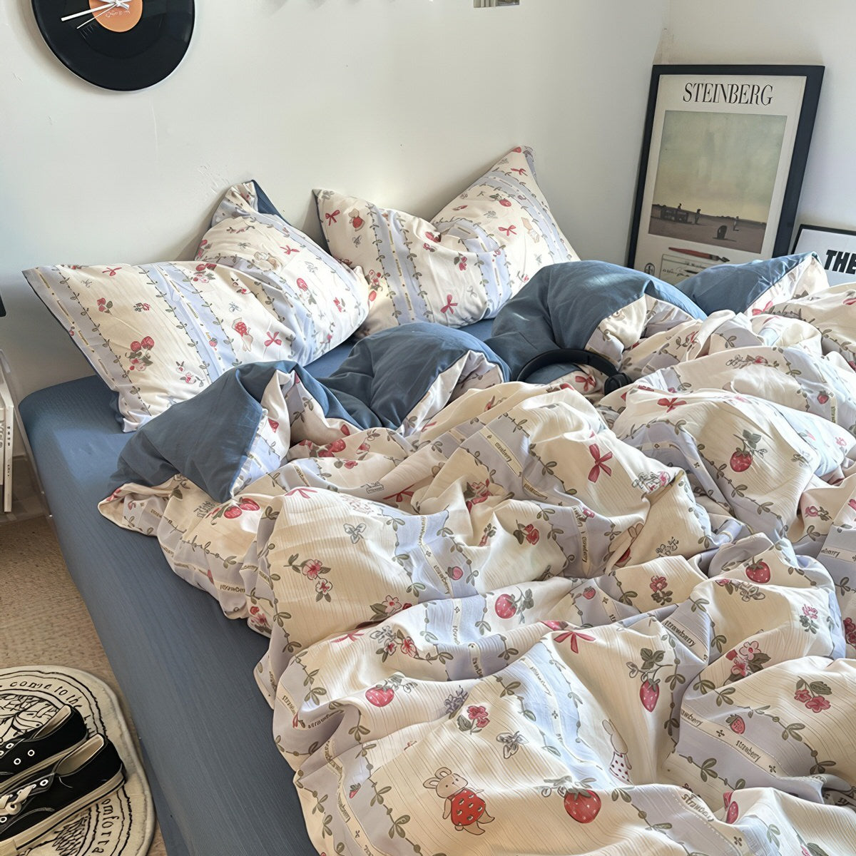 Vintage Erdbeer-Blumen-Bettwäscheset