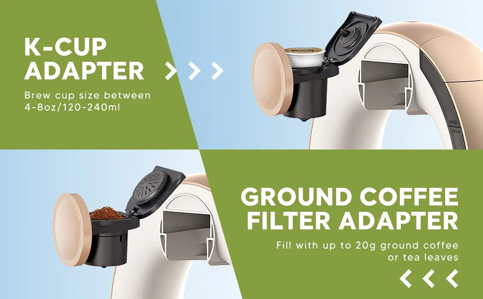 Experience coffee the way you love it with the Mini Q 2-in-1 Single Serve Coffee & Tea Maker, a sleek, oval-shaped marvel in champagne color designed to fit seamlessly into your home, office, or dorm. This compact one-cup brewer is compatible with both KCups and ground coffee, featuring a reusable coffee filter adapter that lets you craft your perfect Americano or tea every day. Brew sizes range from 4 to 8 ounces (120–240ml), so you can enjoy a fresh cup of your favorite coffee or tea without waste.