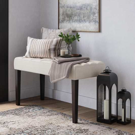Corliving California Bank mit 24 Paneelen, Kunstleder, Weiß