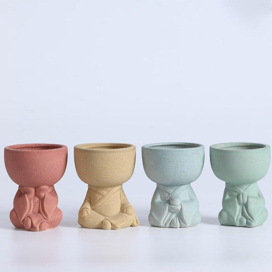 Pot de fleur en céramique humaine méditant