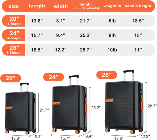 Merax Ensembles de bagages 3 pièces avec serrure TSA, ensemble de valises légères rigides extensibles, noir