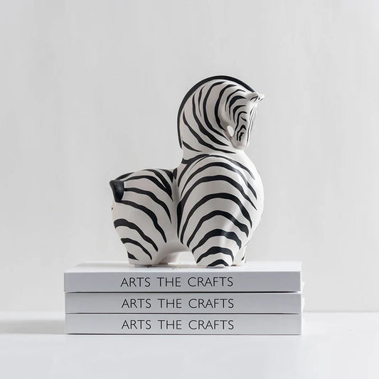 Sculpture moderne en céramique représentant un zèbre et un cheval