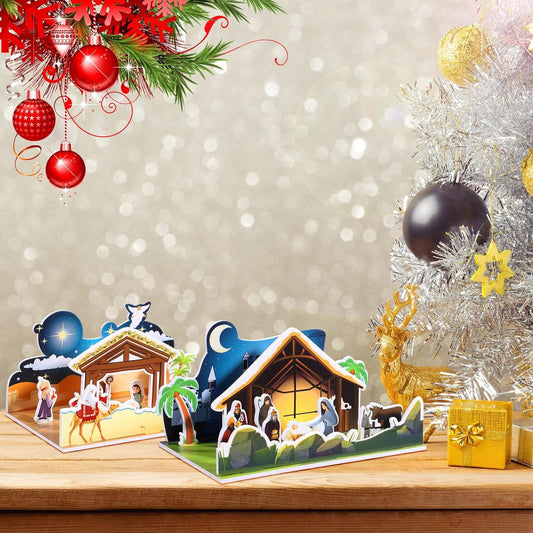 Lot de 2 crèches de Noël - Décorations de Noël - Crèche de Noël - Naissance de l'Enfant Jésus - Kit d'artisanat de Noël - Puzzle 3D - Décorations de table de Noël - Mangeoire d'histoires de Noël pour enfants - Décorations de table de Noël