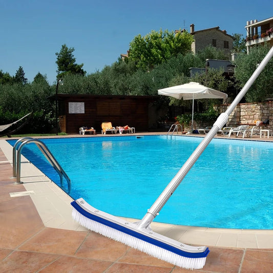 Brosse de piscine de 18 pouces, brosse de nettoyage de piscine robuste avec poils en nylon et clips EZ pour murs, carrelage, sols, marches