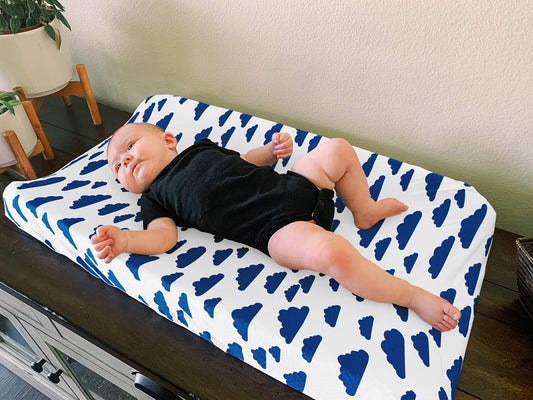 Funda para cambiador – Fundas premium para cambiador de bebé, paquete de 4 – Funda para cambiador de niño o niña – Jersey puro lavable a máquina Funda para cambiador azul marino y blanco – Sábanas para cambiador de pañales