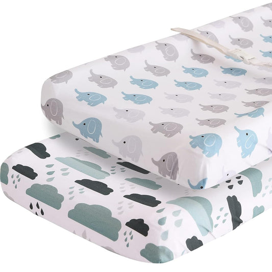 Housse de matelas à langer, 100 % jersey de coton biologique, super douce et confortable, lot de 2, housse de matelas à langer pour bébé fille et garçon (bleu)