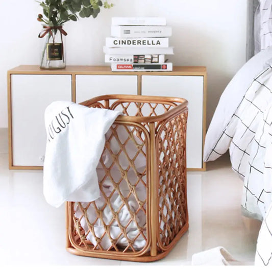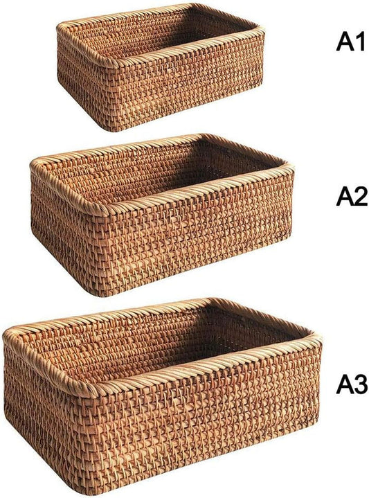 Panier en osier de rotin de tissage fait main, boîte de rangement portative de pique-nique cuisine à la maison