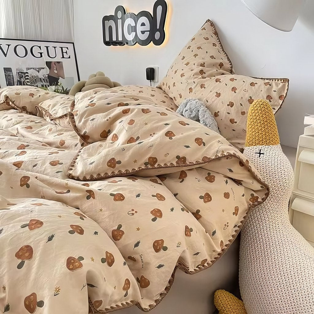 Votre parure de lit parfaite pour cette saison d'automne. Un imprimé de champignons forestiers vintage dans des tons bruns, des bords cousus et un tissu doux en font un choix évident pour les chambres inspirées du cottagecore et de l'esthétique automnale. Préparez-vous à faire de beaux rêves et à passer une parfaite nuit de sommeil en automne.