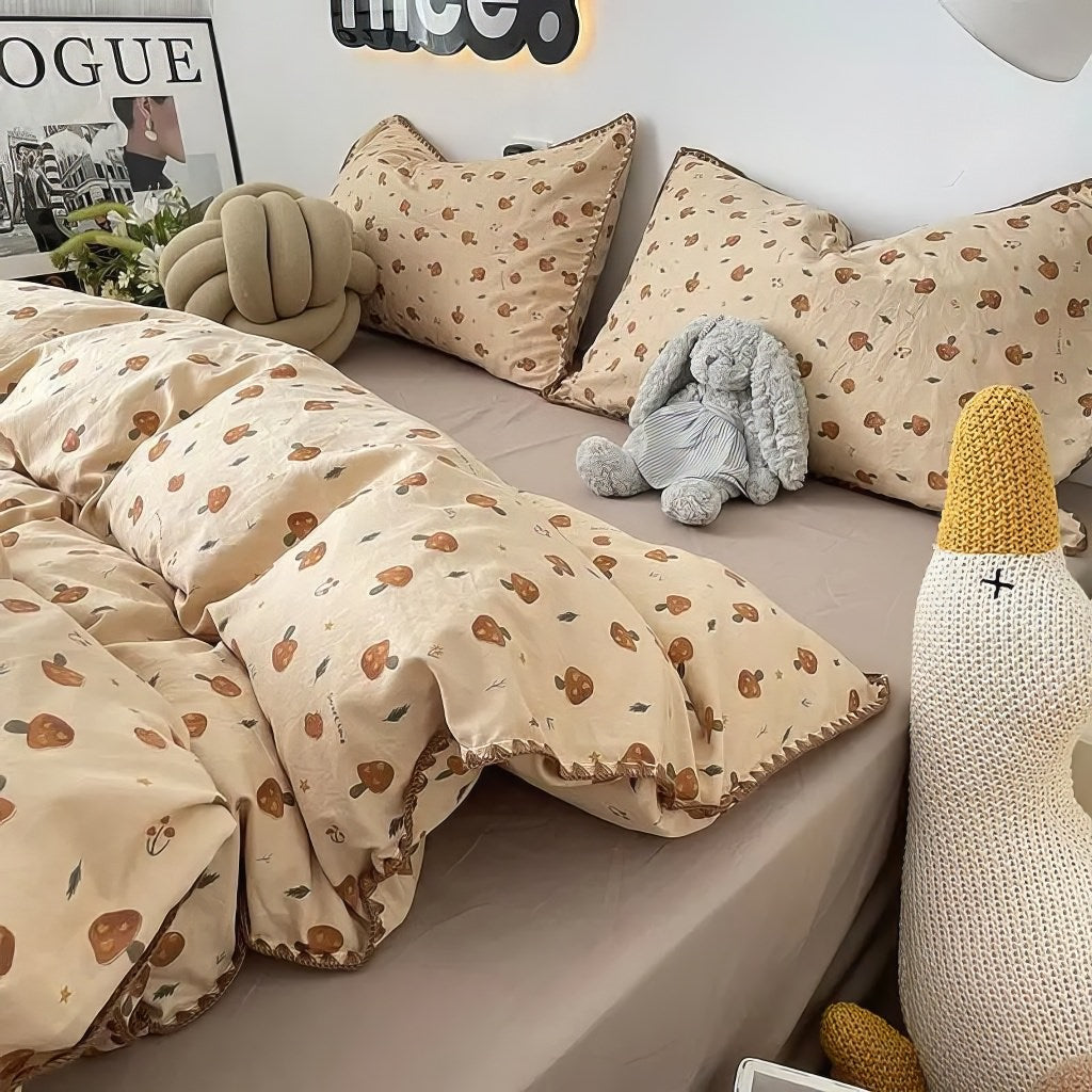 Parure de lit d'automne à motifs de champignons forestiers vintage