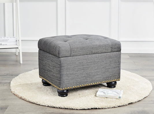 FIRST HILL FHW Ottomane de rangement moderne rembourrée en lin anthracite 5Th Ave, gris