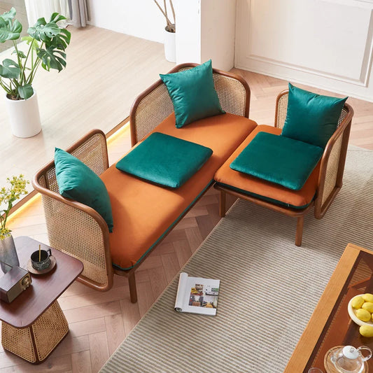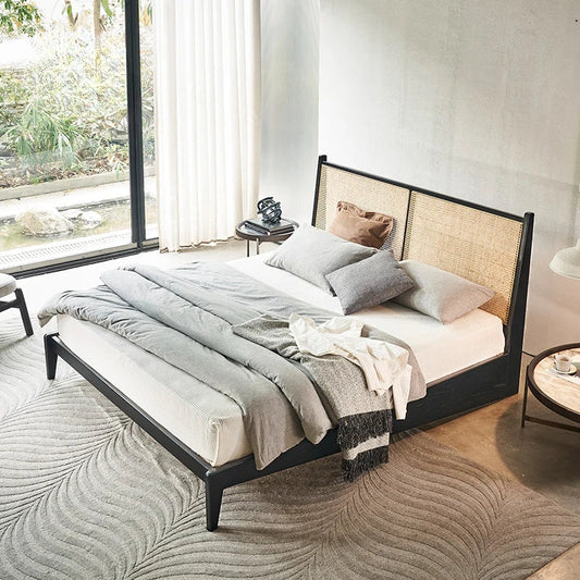 Cadre de lit en bois massif et rotin Vine Boho Noir