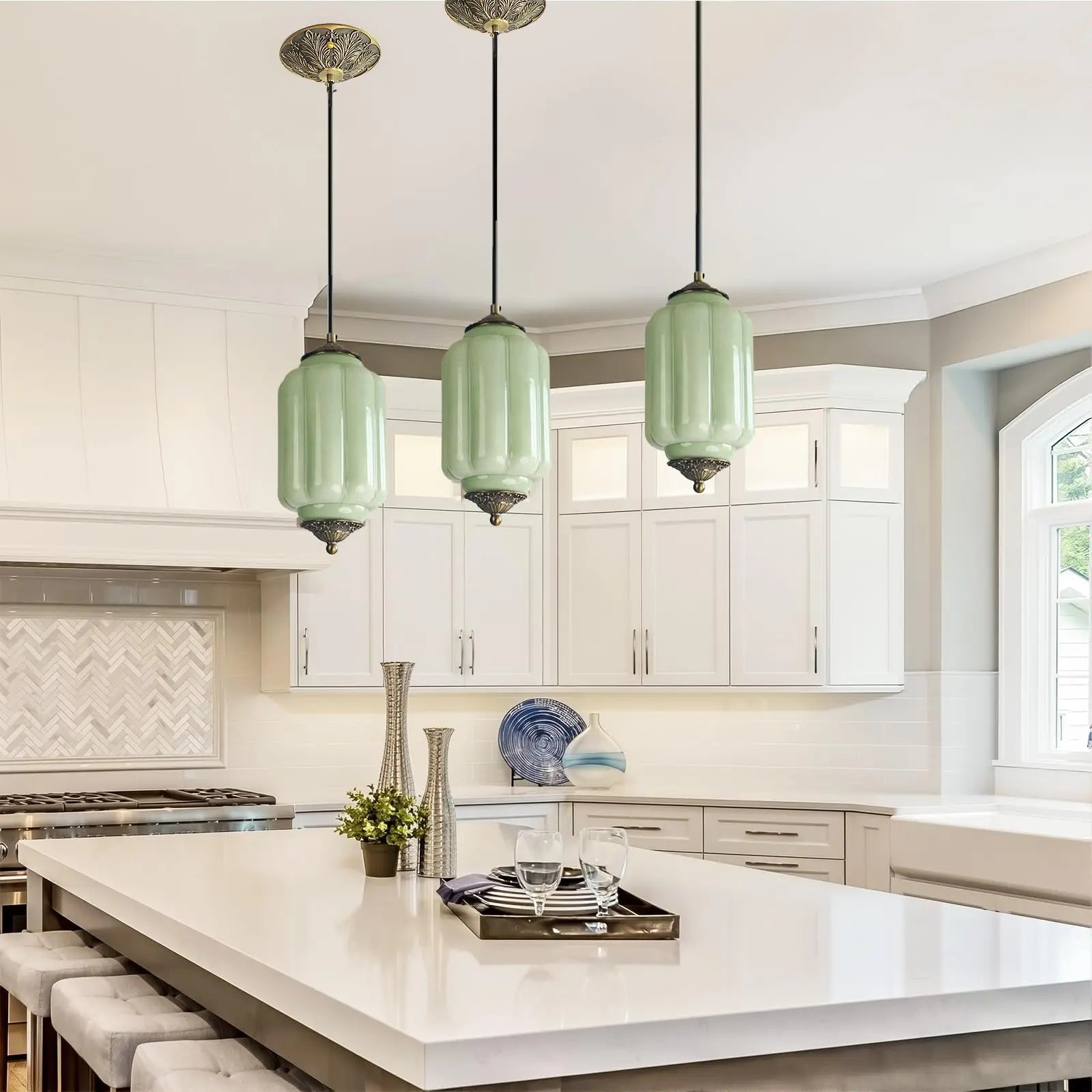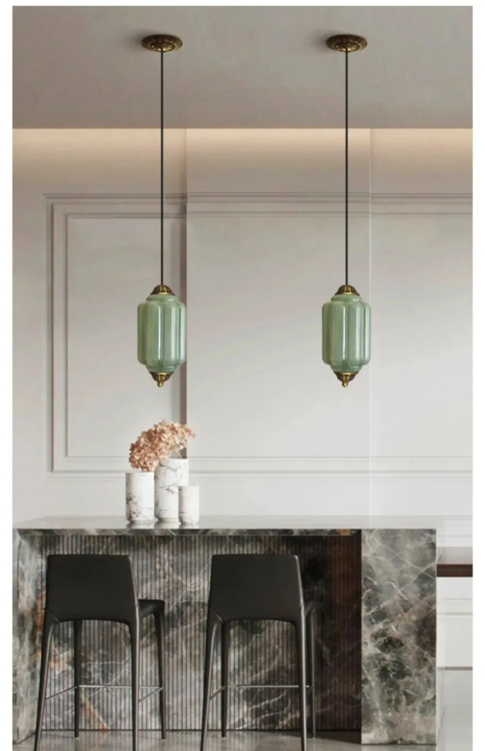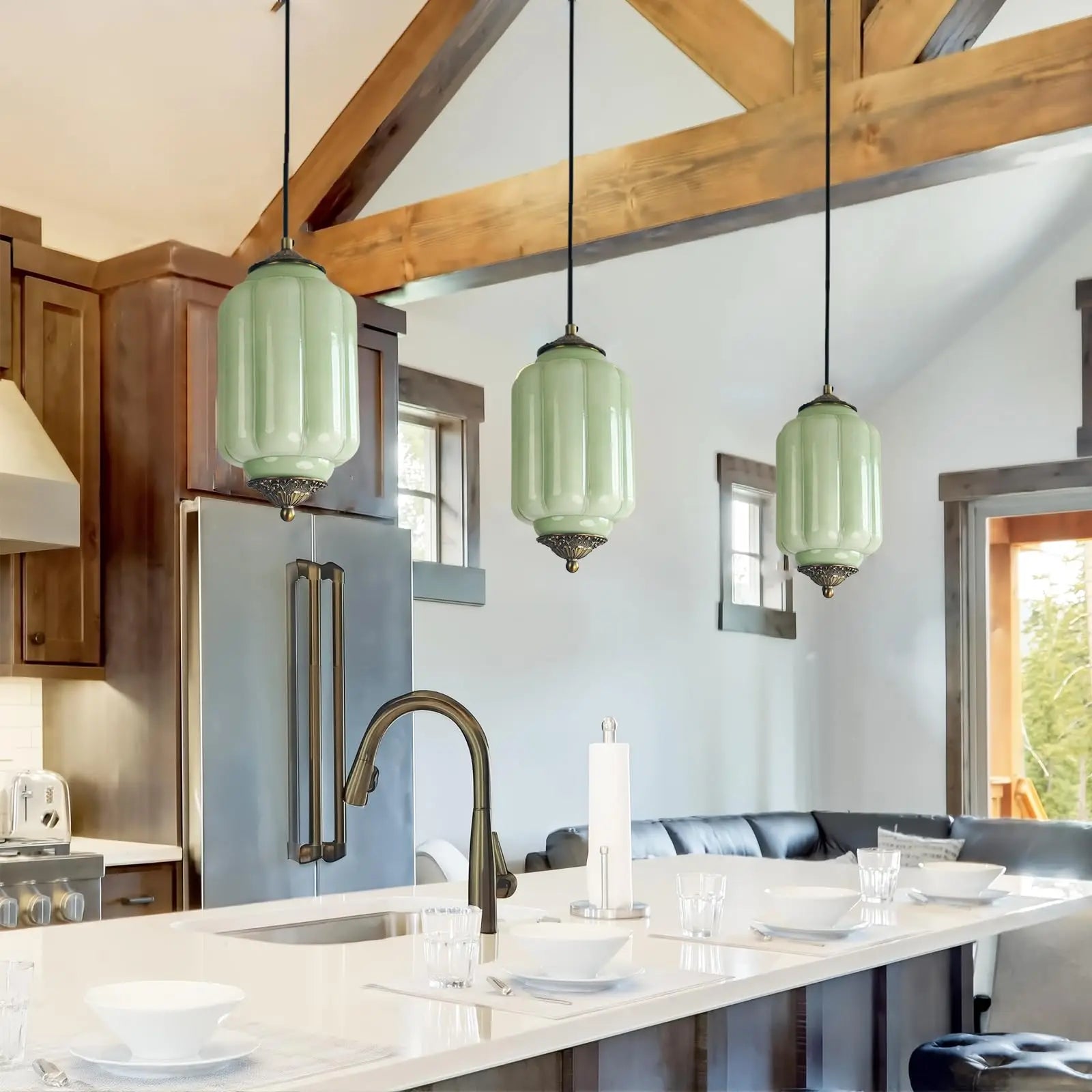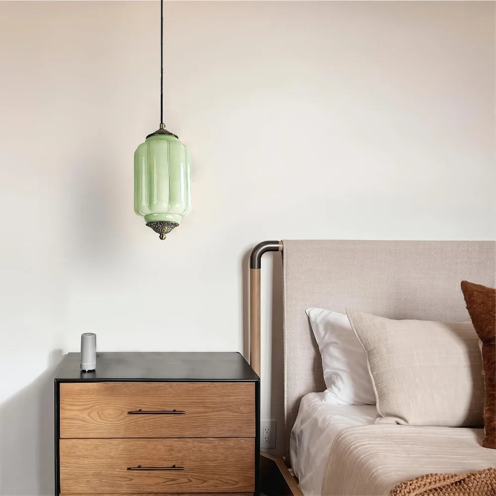 Apportez une touche d'élégance nostalgique à votre espace avec cette suspension vintage en verre strié, où le charme classique rencontre la simplicité moderne. Conçu en forme de lanterne aux courbes douces, l'abat-jour en verre soufflé à la main présente de subtiles stries verticales et se décline en deux tons intemporels : un vert sauge apaisant ou un blanc cassé crémeux, tous deux parfaitement associés à des détails bronze antique chaleureux pour une finition sophistiquée.
