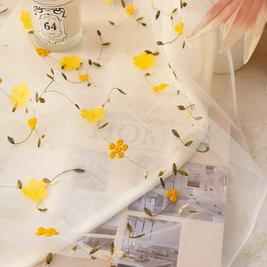 Rideau transparent brodé de fleurs sauvages jaunes