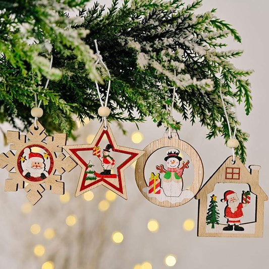 Ensemble de suspension d'arbre de Noël en bois 12 pièces