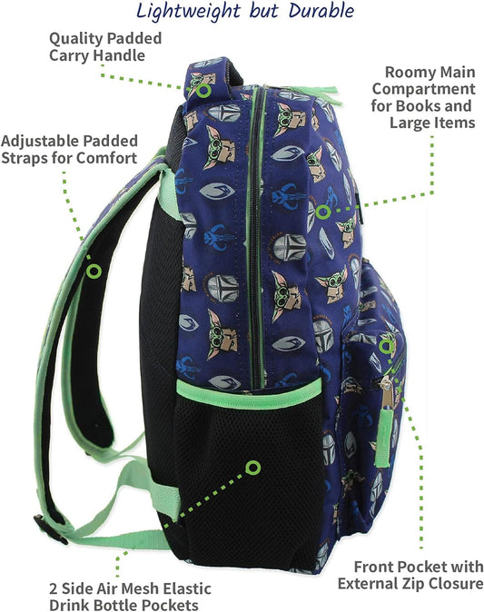 Disney Star Wars Mandalorian Baby Yoda Boy'S Girl'S Zaino scuola per adulti da 16 pollici (Taglia unica, Blu/Verde)