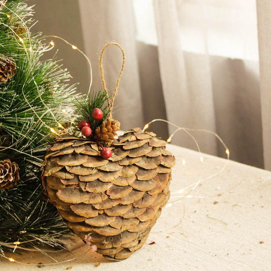 Decorazione per albero di Natale con pigne e bacche a forma di cuore