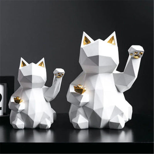 Nordische abstrakte Katzenstatue aus Kunstharz