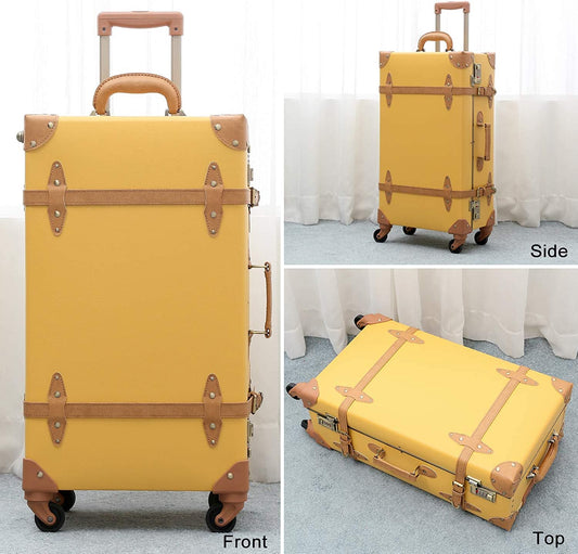 Urecity Set di valigie vintage da donna, set di valigie vintage da donna 2 pezzi, grazioso bagagliaio di design, valigia retrò (giallo senape, 26"+12")