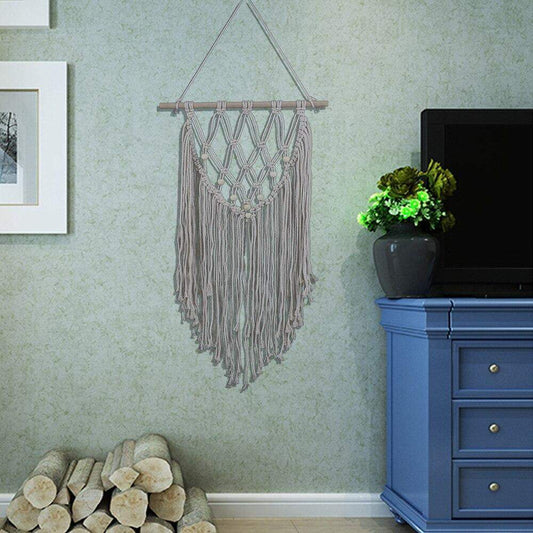 Arazzo in cotone fatto a mano con decorazione da parete in macramè blu