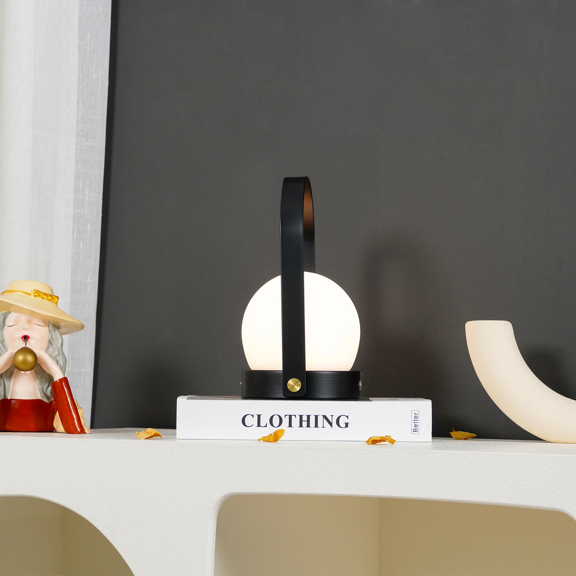 Flexible Lighting Solution: Made with freedom and flexibility in mind, the Carrie Table Lamp effortlessly adapts to any space, whether it's on your bedside table, desk, or shelf.