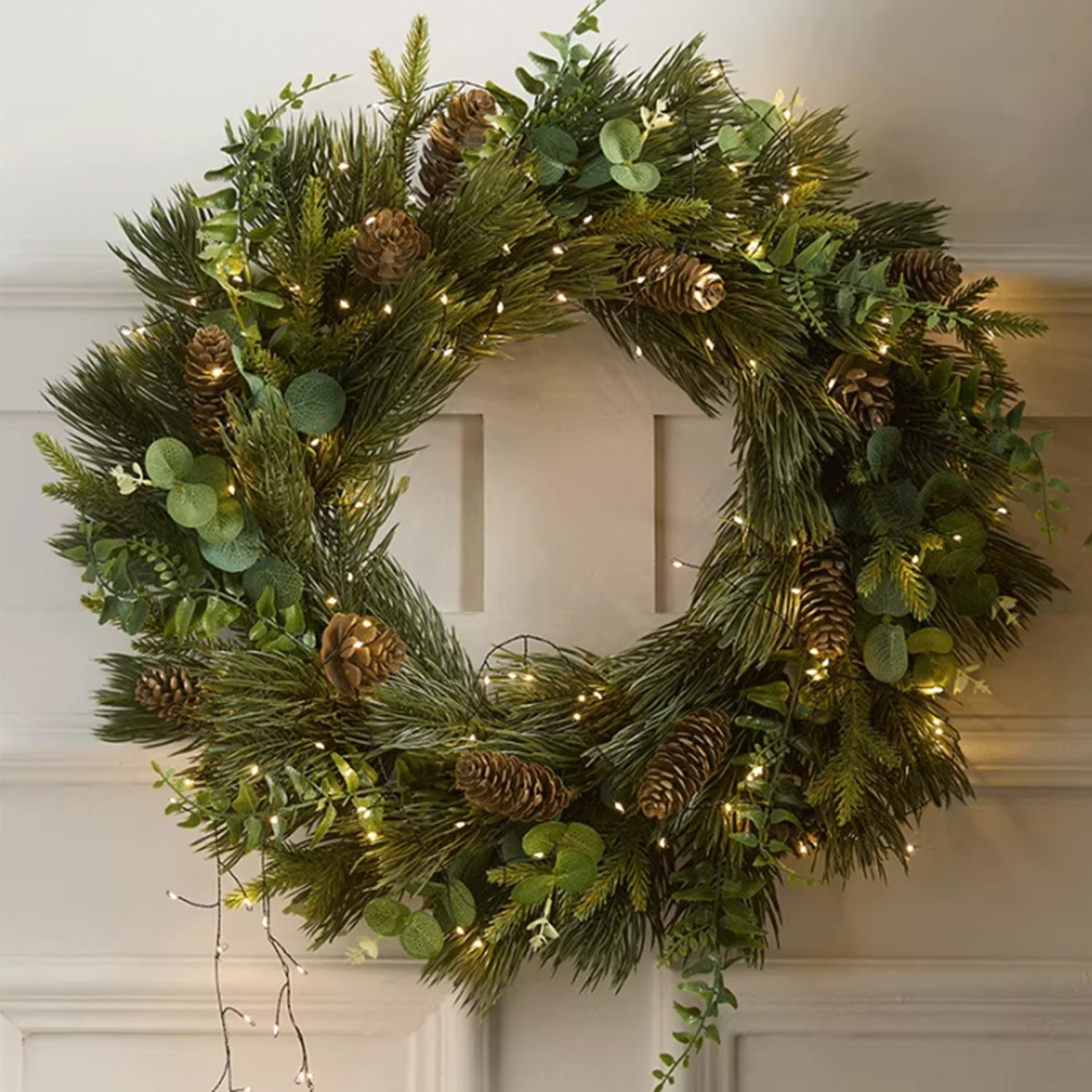 Make a grand festive statement this Christmas. This oversized set includes a stunning 50cm wreath and a lush 2m garland, both pre-lit to effortlessly create a warm, elegant ambiance. Key features include: