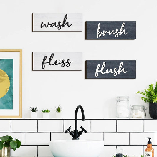Jetec 4 Pezzi Decorazioni da Parete per Bagno in Fattoria Cartelli per Lavare Cartelli in Legno Rustici da Appendere Arti da Parete per Bagno Primitivo Decorazioni in Legno Country Vintage Targhe da Parete per Casa Camera Bagno (Grigio, Bianco)