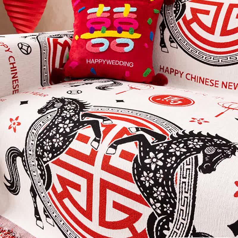 - Festive Zodiac Design: Beautifully woven with traditional horse motifs, red lanterns, and the "Happy Chinese New Year" slogan to welcome prosperity and luck.