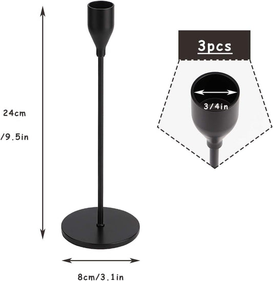 Dedoot Portacandele, Portacandele Conici Set di 3, Portacandele Nero Alto 9,5 Pollici Portacandele Alto in Metallo Adatto a Candelieri da 3/4 Pollici, Portacandele Decorativo per Tavolo