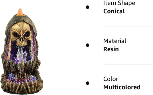 Bruciatore di incenso a riflusso Geode Skull con LED - 6,5"