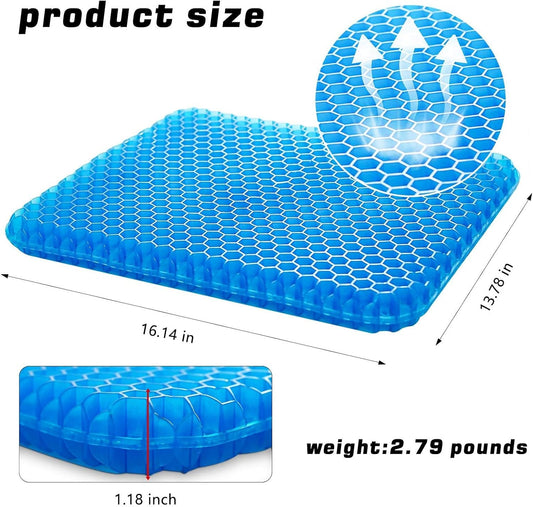 Cuscino per sedile in gel (blu) per sedia da ufficio, sedia a rotelle, auto, cuscino per sedile da ufficio a due piani con rivestimento antiscivolo traspirante per alleviare il dolore alla sciatica e al coccige (nero - cuscino del sedile quadrato)