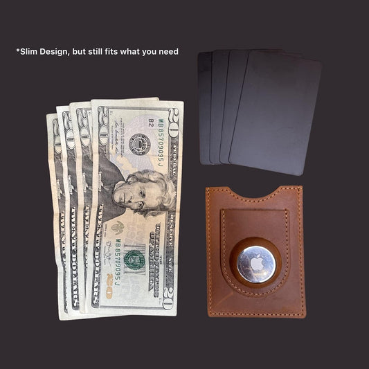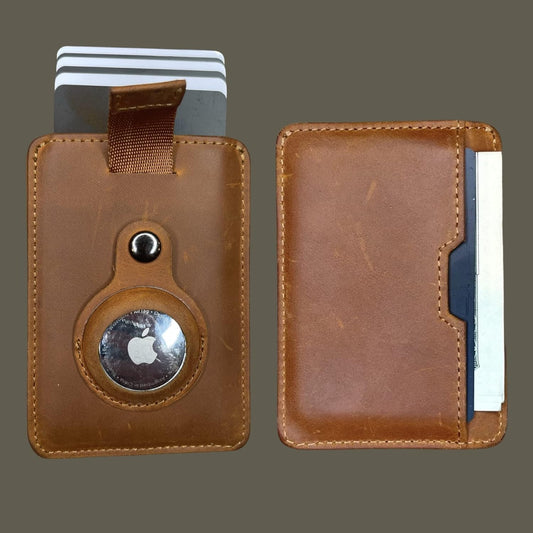 Portafoglio Airtag minimale in vera pelle Porta carte sottile con tasca frontale Blocco RFID con slot Airtag modellato | con confezione regalo