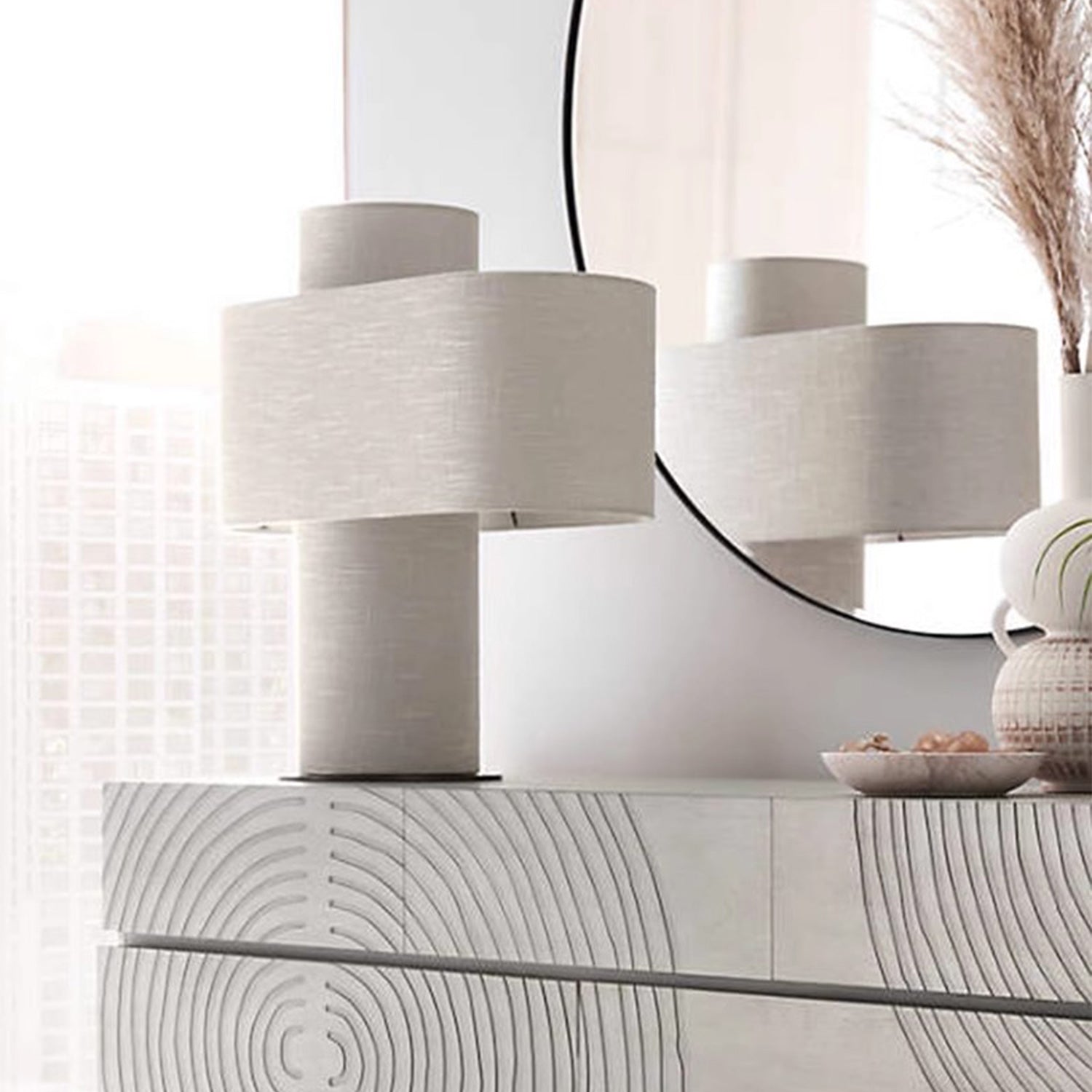 Add a soothing vibe to your bedroom or office with our night light. Crafted from fabric and iron, this Wabi Sabi inspired lamp introduces soft, ambient illumination to your space. Its rounded edges provides a soft touch while the sturdy iron base ensures stability. Illuminate your bedside or reading nook with its warm glow.