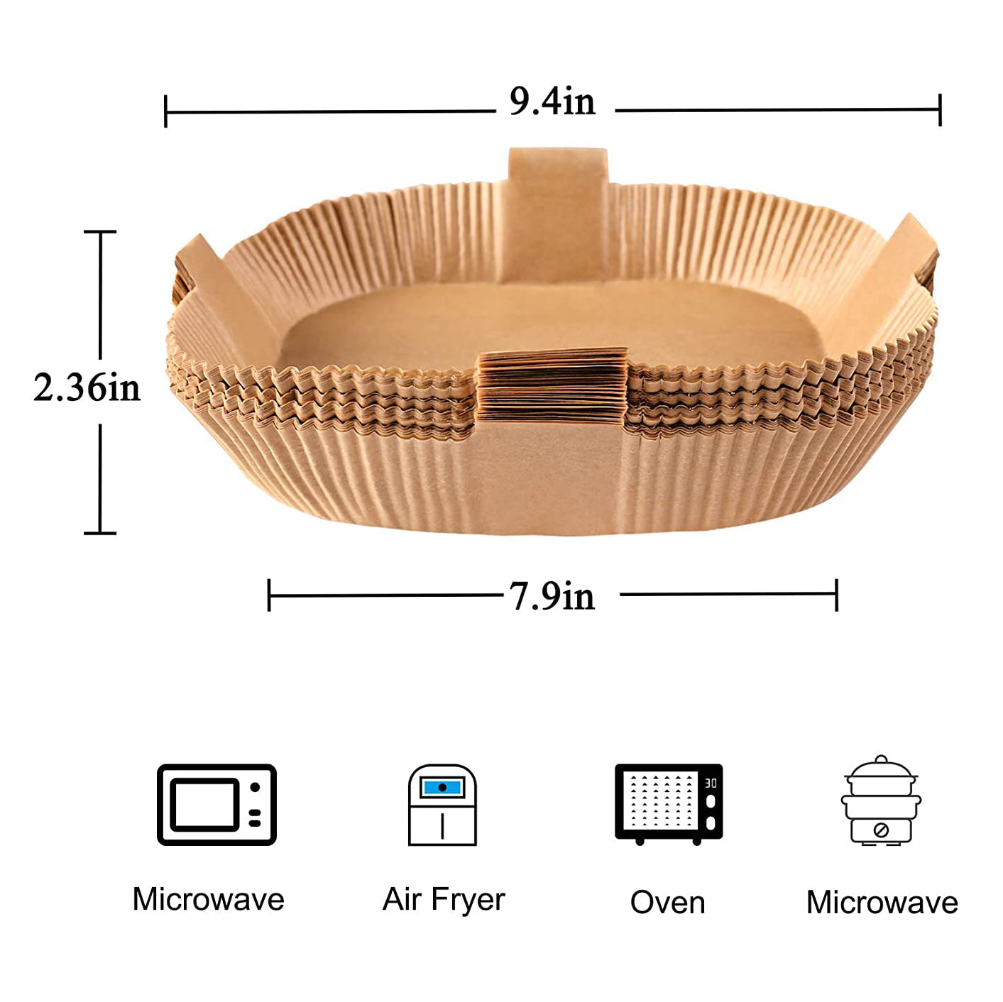 - Perfect size& Easy to clean: It is available in three different sizes: 6.3 inch round / 7.9 inch Round / 7.9 inch Square, which is compatible with most sizes of air fryers. Please measure the inner basket size and select the size you need before placing an order. If you hate cleaning the air fryer, this is a must. These disposable paper liners effectively keep food debris away from the fryer, protecting your steamer and air fryer from food debris and making cleaning a breeze.
