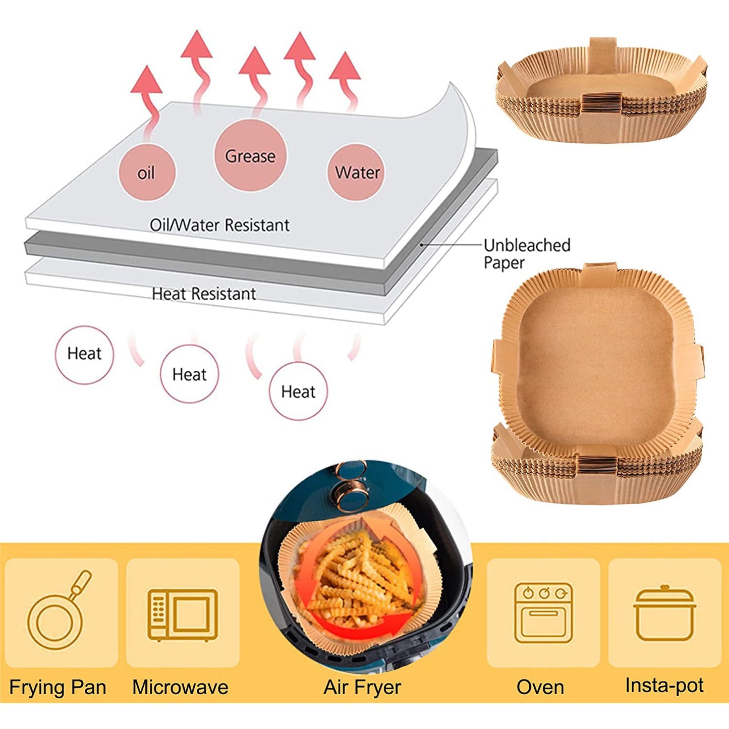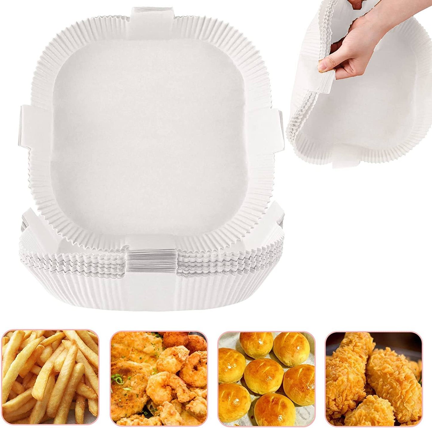 - Easy to use: Disposable fryer liner is designed to be bowl-shaped so you don't have to tear, fold, cut, or bend. When you're cooking, just take one out, put it in your air fryer or microwave, and cook it the way you like. Air fryer paper has a 4.5cm edge that protects the side of the frying pan and prevents food from sticking to them.