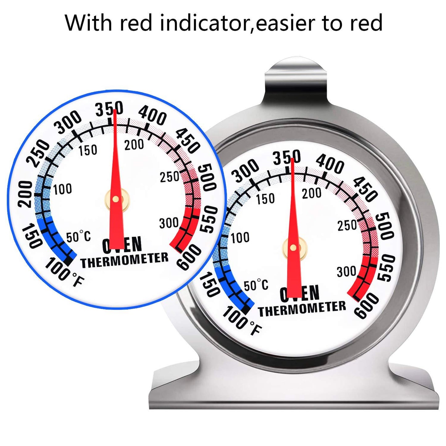 - Large Dial Easy to Read: Oven thermometers for electric oven has large 2.4 inch dial, clear blue and red zones indicating big numbers on the dial, which help you easily read the temperature of the oven.