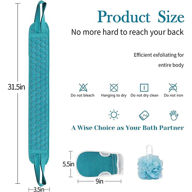 Deep Clean and Vitalize Your Skin with the Exfoliating Body Scrubber Set - Includes Back Scrubber, Bath Glove and Shower Bath Sponge Loofah.