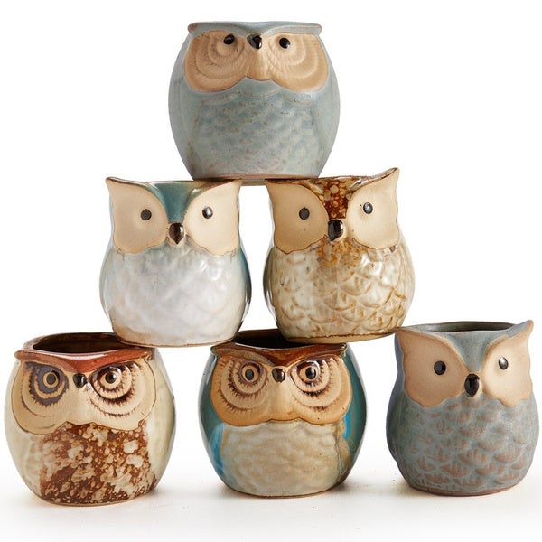 6-Pack: 2.5 Inch Owl Pot Ceramic Base