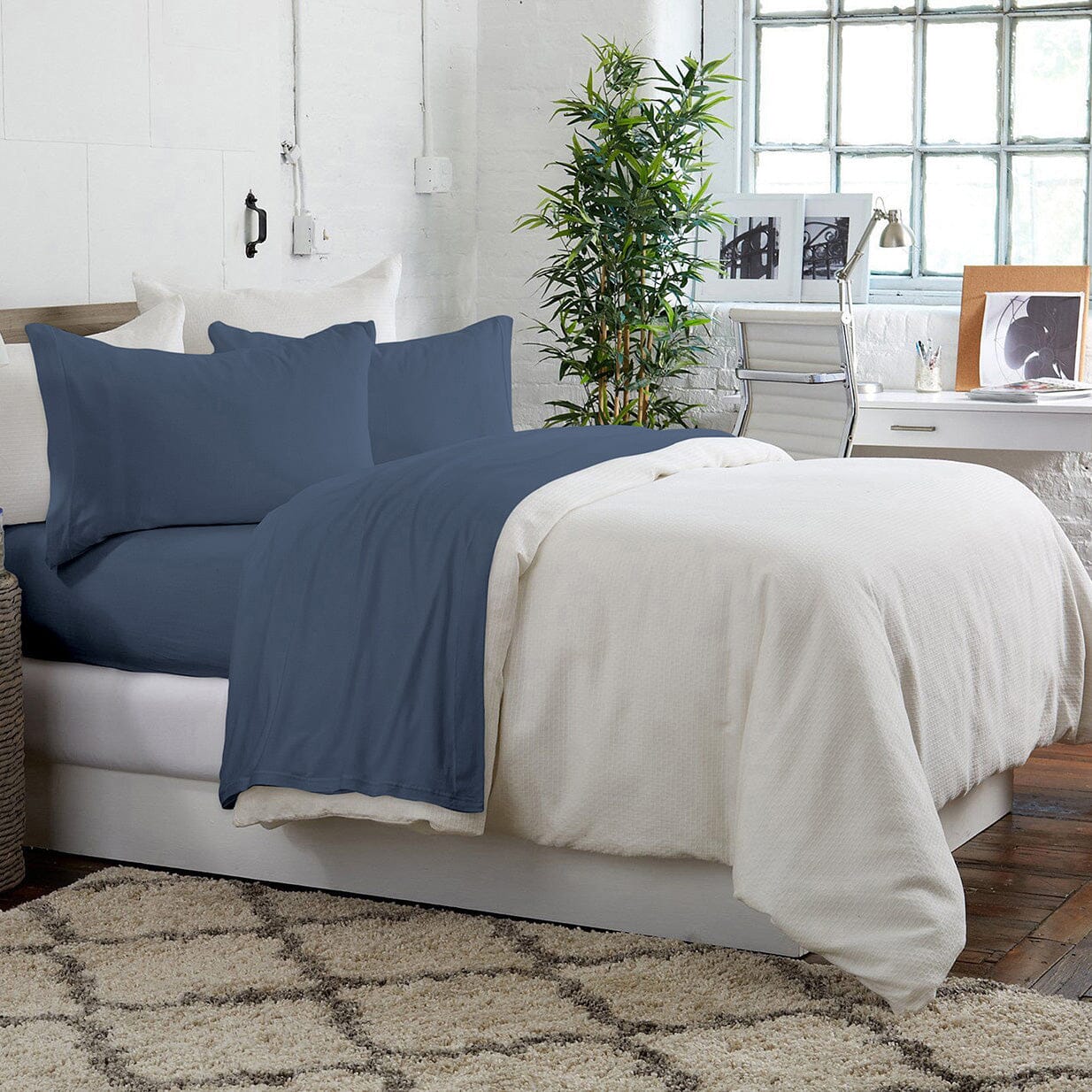 Our Brooklyn Flat Jersey Knit sheets are the ultimate soft and cozy sheets for everyone and every room. We combine the softness and breathability of cotton with the durability and easy care features of polyester to create the essential jersey knit sheet. You’ll feel like you’re sleeping in your favorite t-shirt every night. Available in a variety of colors to match your decor, these easy-care sheets are resistant to shrinking, wrinkling, pilling and fading.