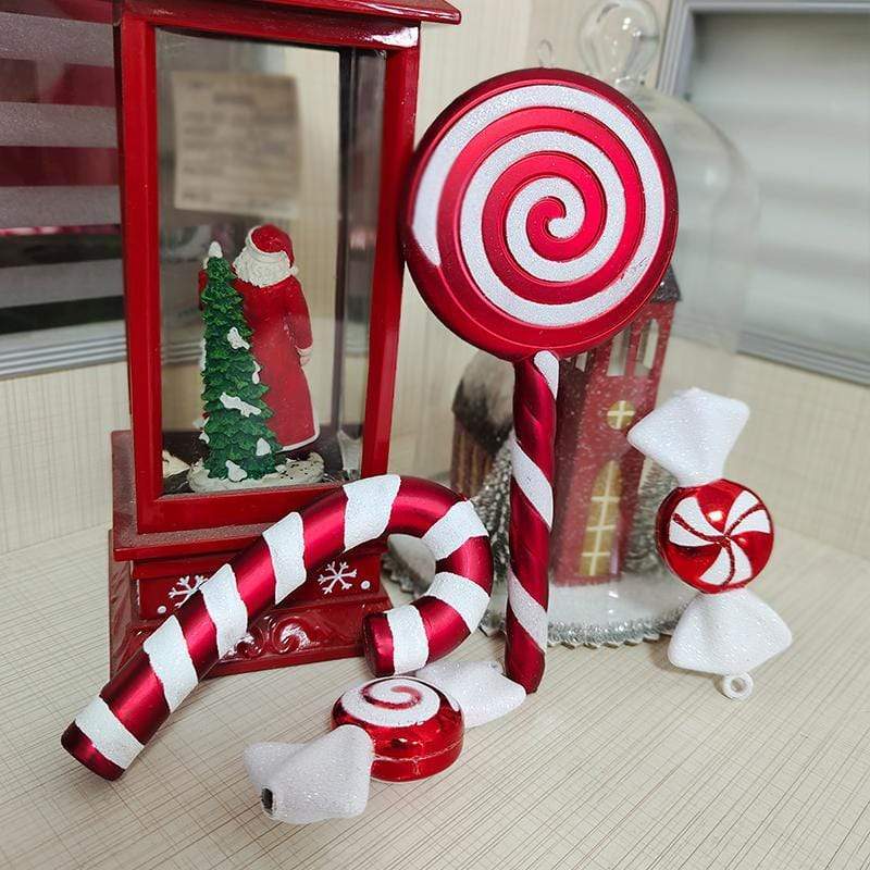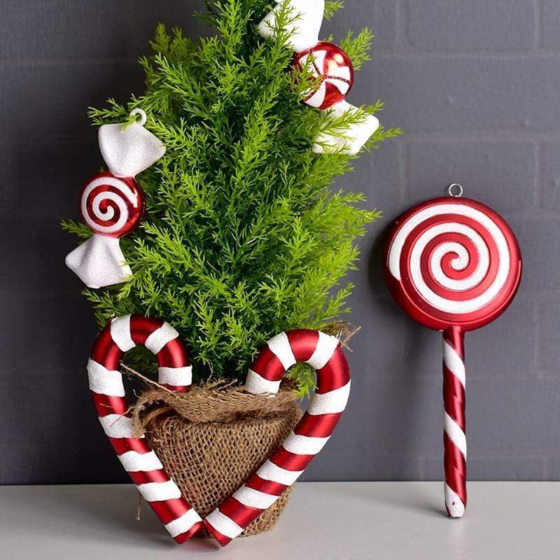 Create a whimsical and exciting display for the festive season with these Candy Cane Christmas Ornaments. Crafted from lightweight materials and a durable and flexible stem, this lollipop pick features a red and white swirl design made from soft felt material and felt bow details on the stem.