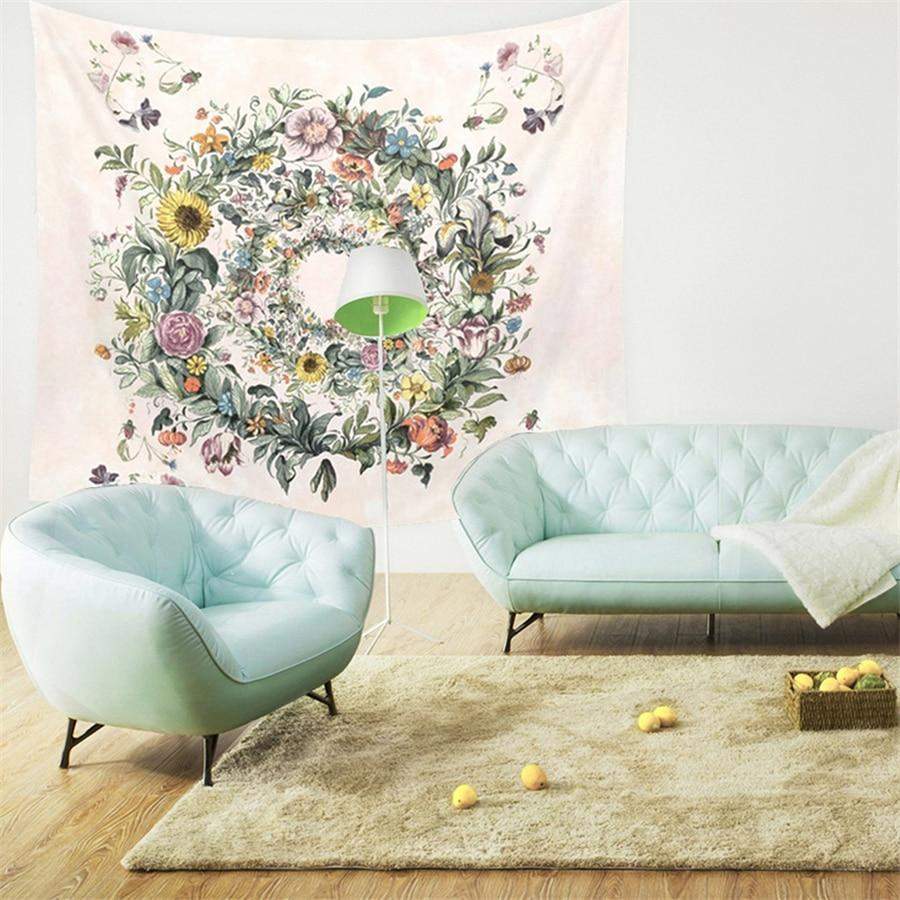 Bring a touch of nature into your home with this Circle of Flowers Tapestry. This wall hanging features a beautiful floral design with an array of different flowers, creating a colorful and vibrant display. The tapestry is made of high-quality polyester and measures at a large size, making it perfect as a focal point in any room. The colors and design of the tapestry are so vibrant that it can brighten up any room and add a pop of color. The tapestry can be hung on the wall, used as a bedspread, tablecloth, or even a picnic blanket. Perfect for adding a natural touch to your living room, bedroom, or even a dorm room.