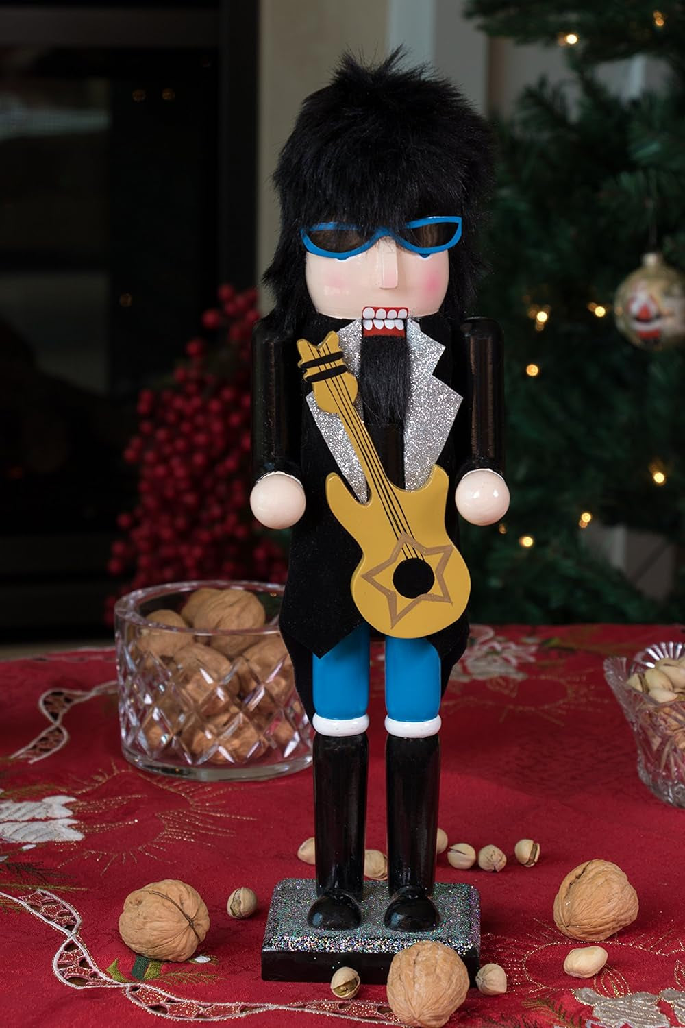 Clever Creations Guitarist 15 Inch Traditional Wooden Nutcracker, Festive Christmas Décor for Shelves and Tables