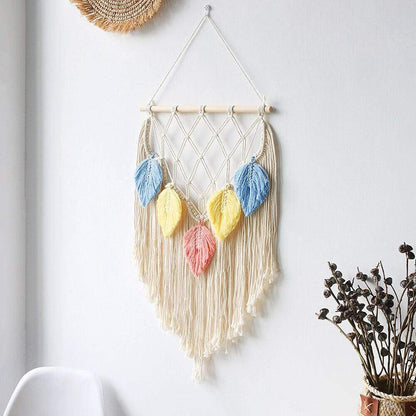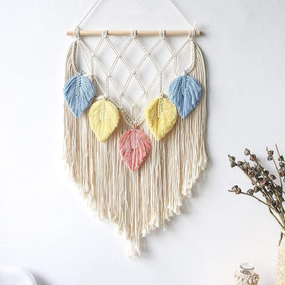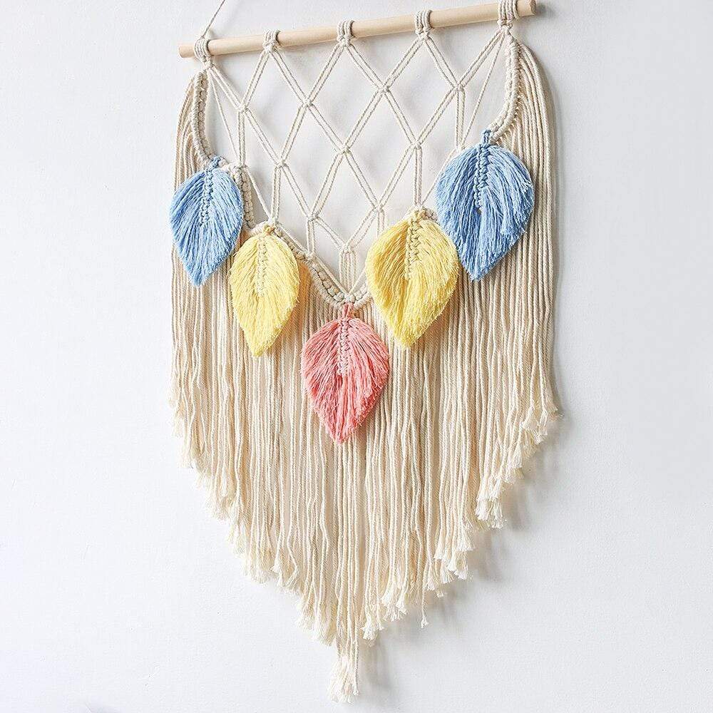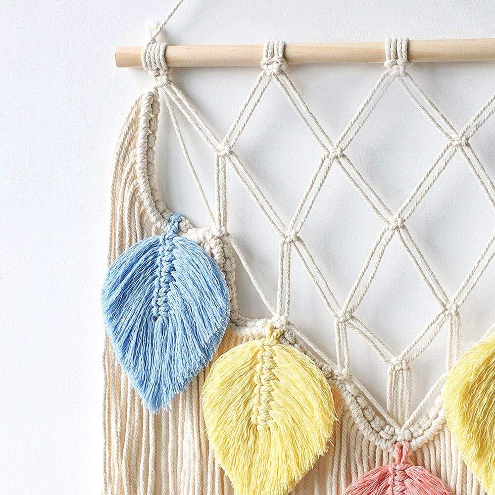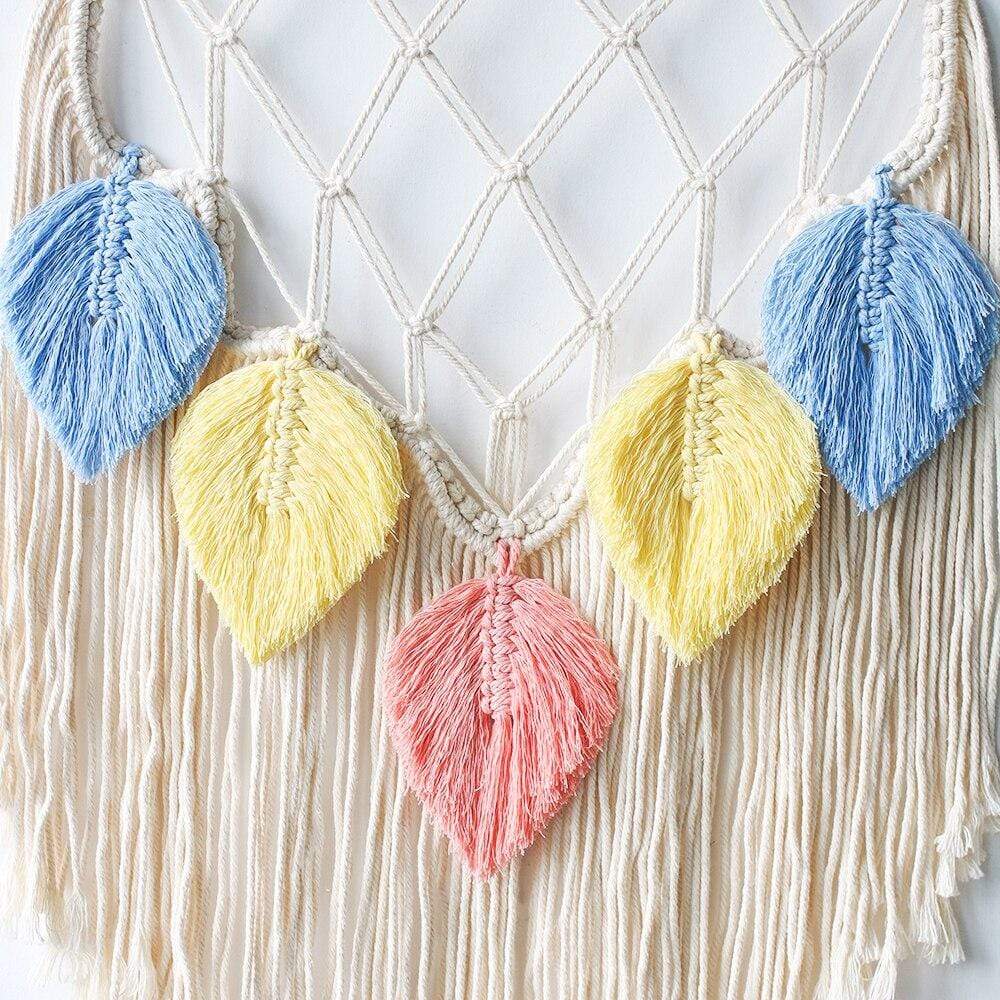 Colorful Leaf Macrame Wall Hanging - Spring and the trees, branches, and the rising of nature inspired this macrame wall hanging. Decor your wall and make your home cozier.
