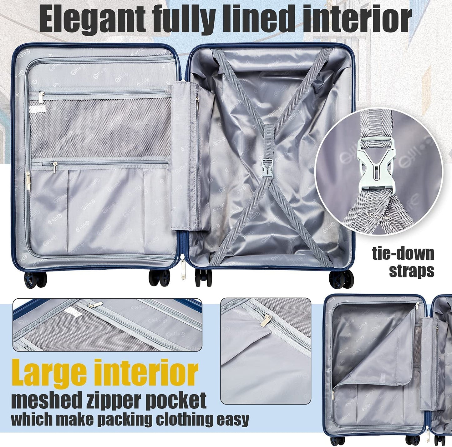 - The large suitcase is expandable to accommodate more travel needs, while the small one is designed with multiple functional front pockets for laptop up to 15.6 inches, tablet up to 13 inches, charger, USB cable, passport, cards and other gadgets.