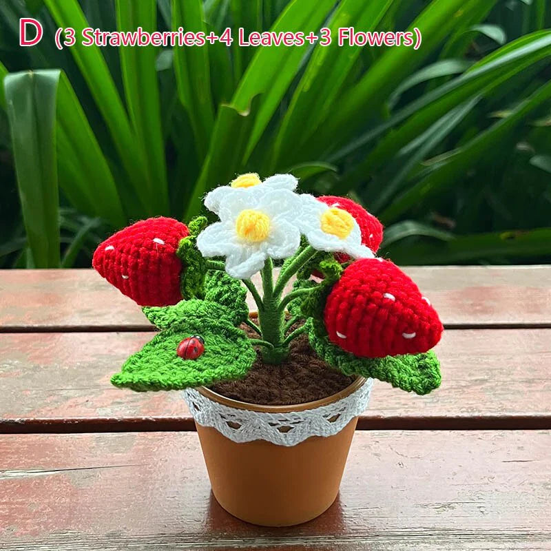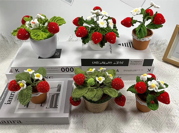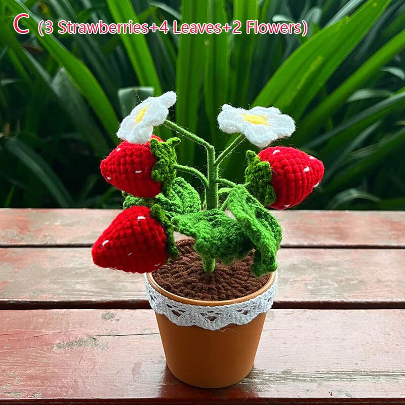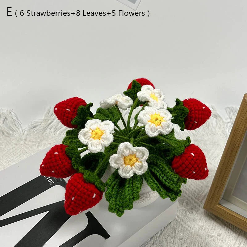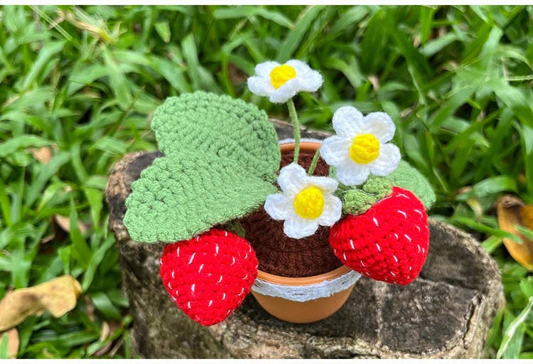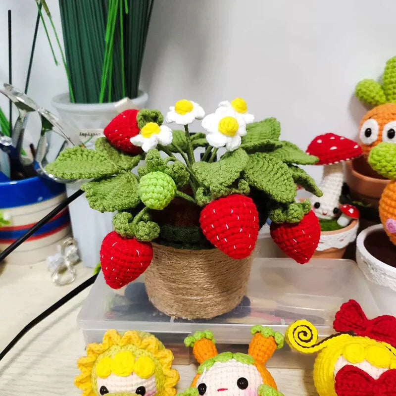 These adorable Crochet Mini Strawberry Plant are made of high-quality combed cotton yarns, so they’re soft to the touch. The stems of these plants have built-in wires that can be bent or trimmed at will: your little ones can enjoy them for years to come!