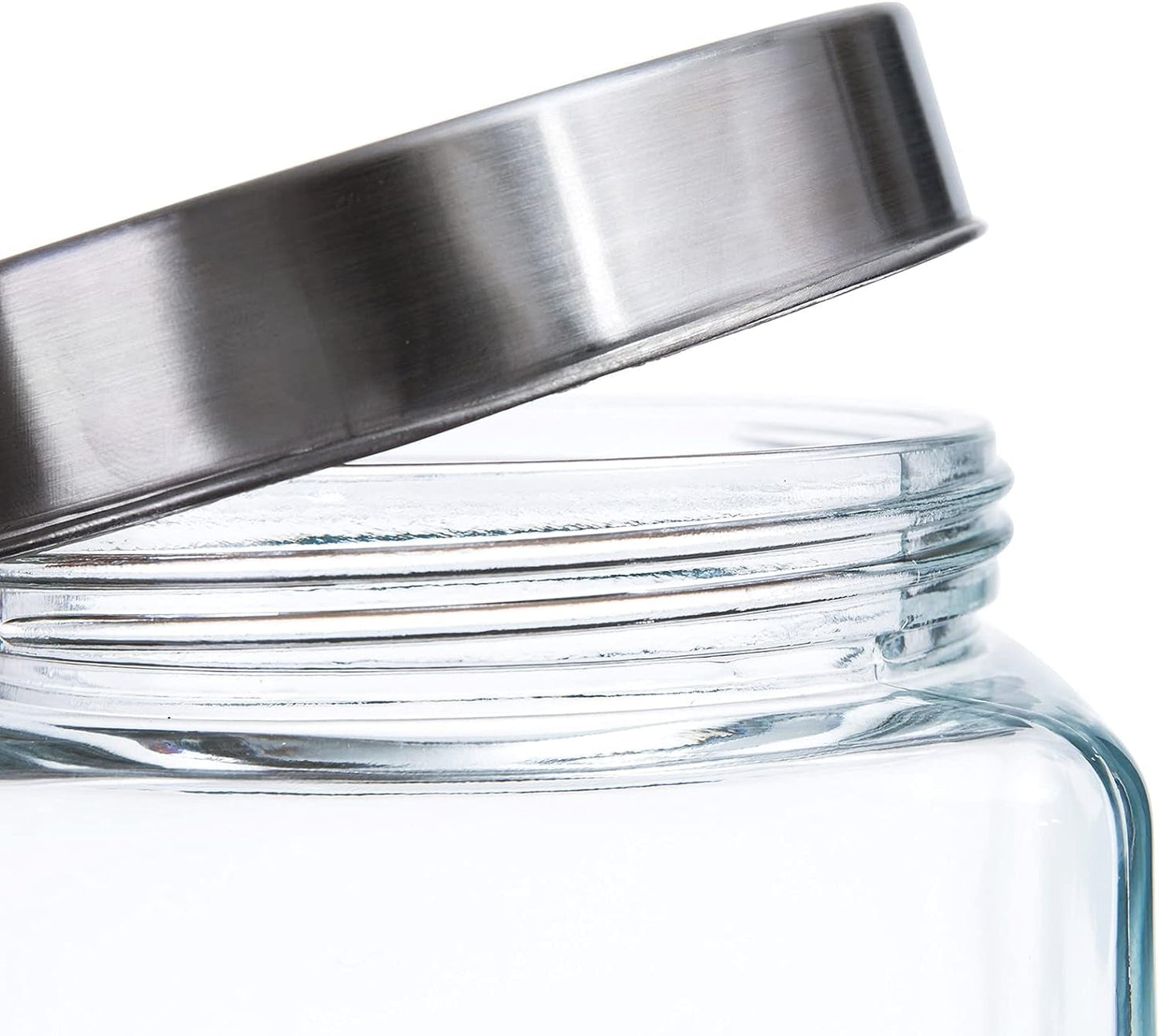 Diamond Star Glass Square Jars Airtight Storage Jar Kitchen Canning Jar Wide Mouth Cookie Candy Jar with Sealed Metal Lids (Square)