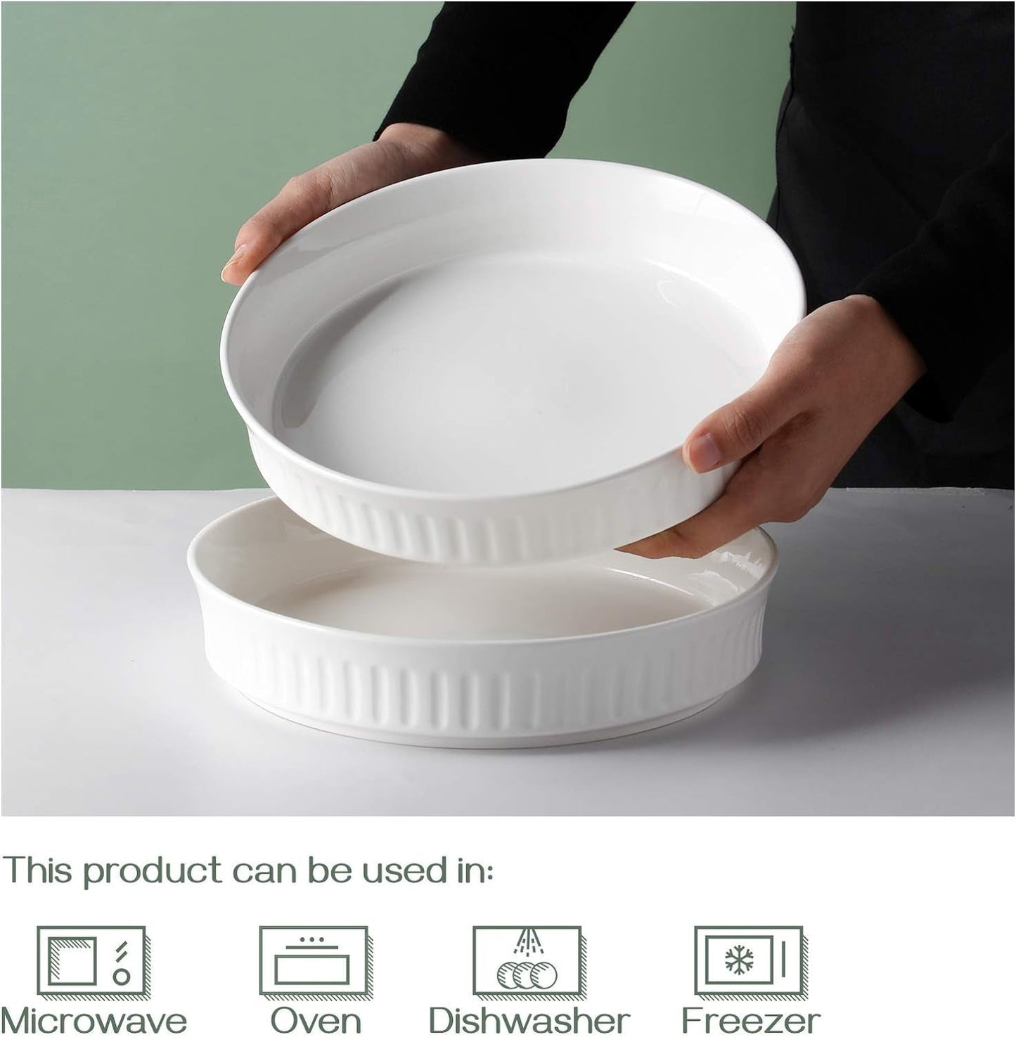 • Sturdy and Heat-Lasting Porcelain: The Pie Pan Set is made of high-quality porcelain that for oven tolerate up to 500°F. Every dish that goes tableside is gonna stay warm with the excellent heat retention. And also Safe for Dishwasher, Microwave, Freezer