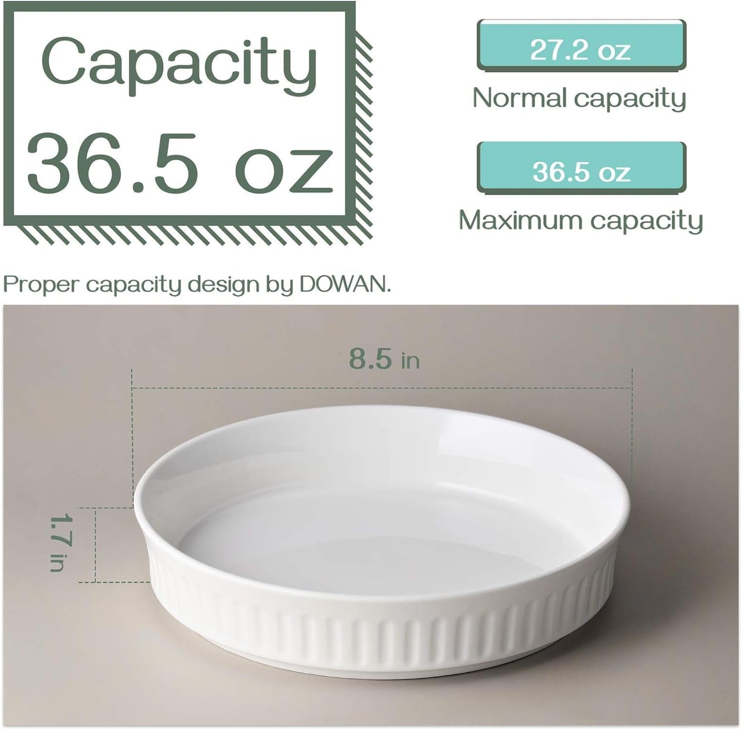 • Ideal Size with Adequate Capacity: The optimum size 36 Ounce; L: 8.5" x H: 1.7" could meet any of your baking requirements, such as pie, pizza, crustless quiche, chicken pot, shepherd’s pies, fruit tart