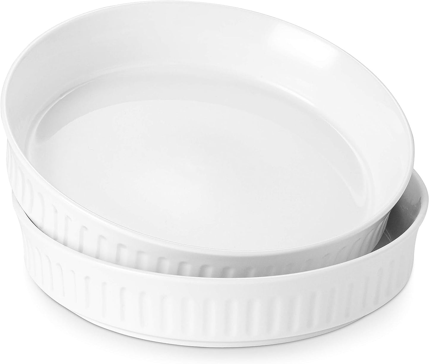 DOWAN Quiche Pan Set of 2-8 Inches Ceramic Pie Pan for Baking, Porcelain Tart Pan Deep Dish for Pie, Pizza, Crustless Quiche, Chicken Pot, round Pasta Serving Bowl Microwave Safe, White