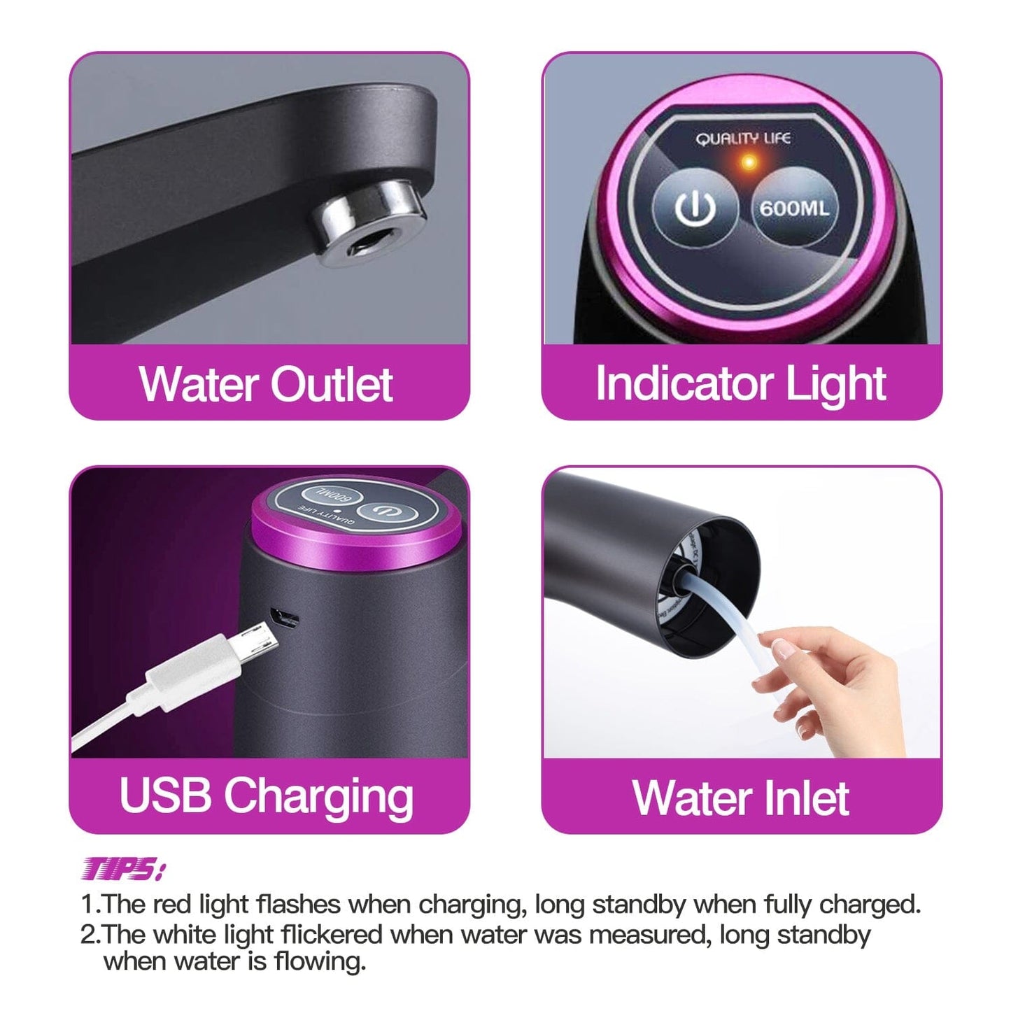 - Rechargeable Battery: Built-in 1200mah rechargeable battery, guarantee you long-term use and don’t have to charge frequently. Designed with charging indicator, allow you to easily recognize whether the water pump is fully charged.
