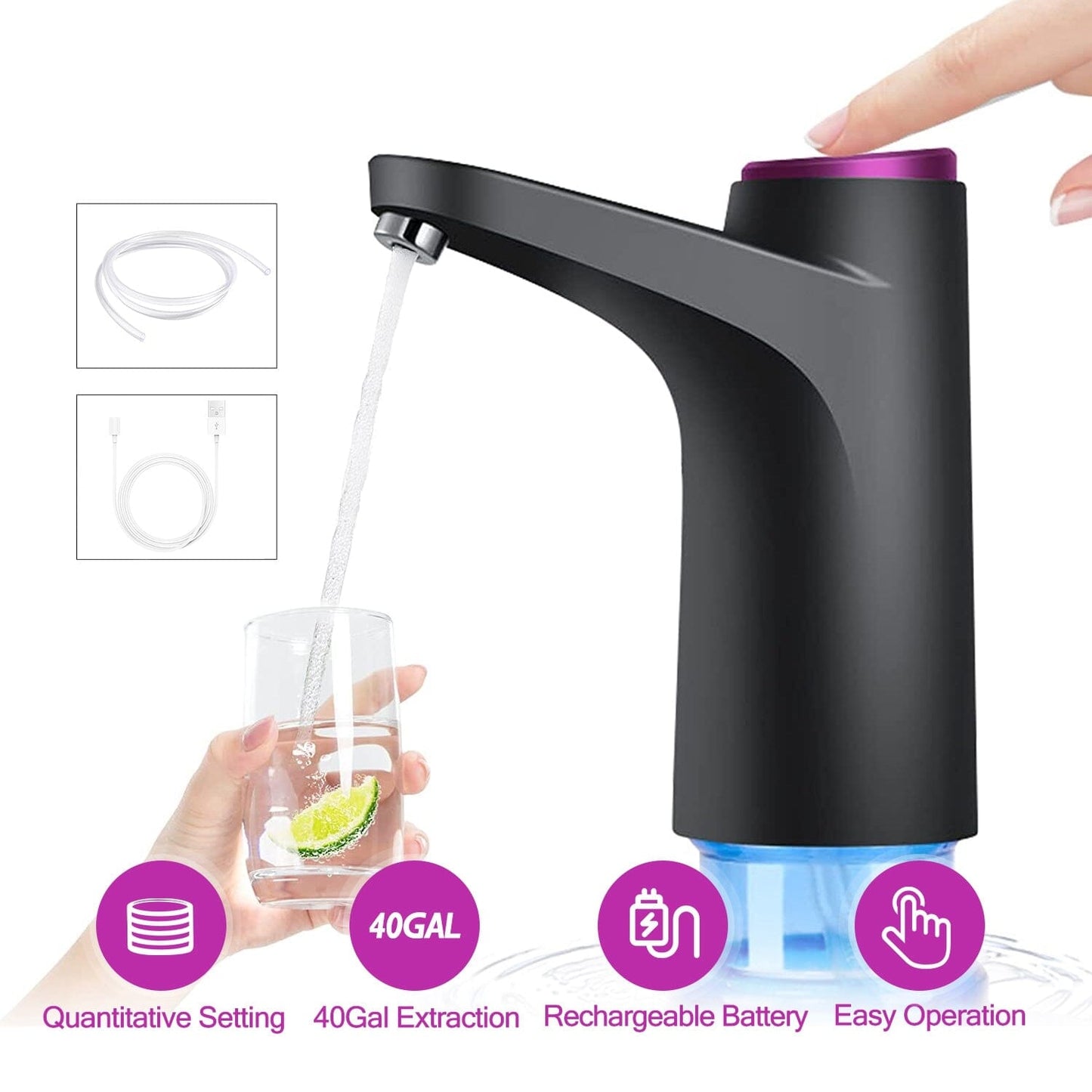 Are you annoying about lifting heavy water bottle? Our portable water dispenser pump is healthily designed for drinking fresh water. Up to 40Gal volume and quantitative setting offer you reassuring experience. Built-in rechargeable battery, no need to frequently charge. Easy to install and use even suits for kids and elders. An effective water pump brings much convenience in your daily life.